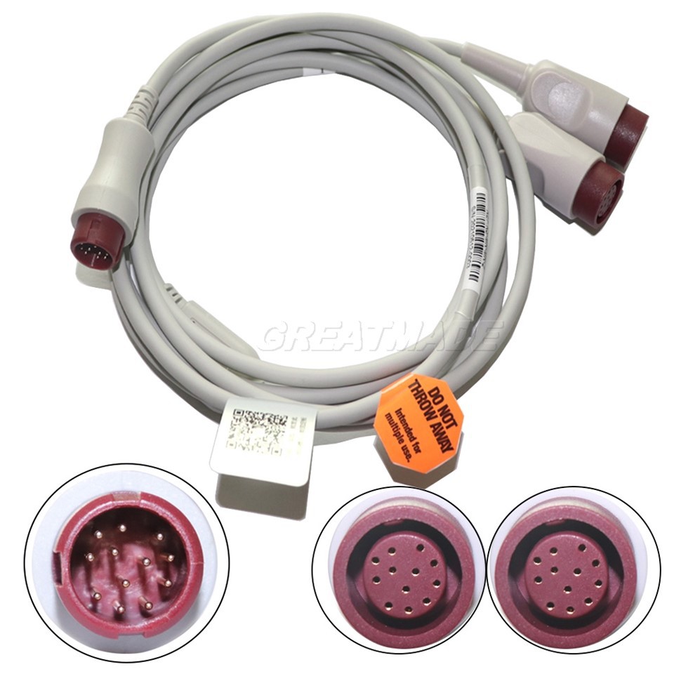 Mindray compatibele druk transducer interfacekabel, 12 -pin plug tot 12pin socket*2