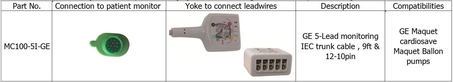 Compatibele GE MAQUET-ballonpompen 5-afleidingsmonitor IEC-trunk-kabel, 9FT & 12-10pin