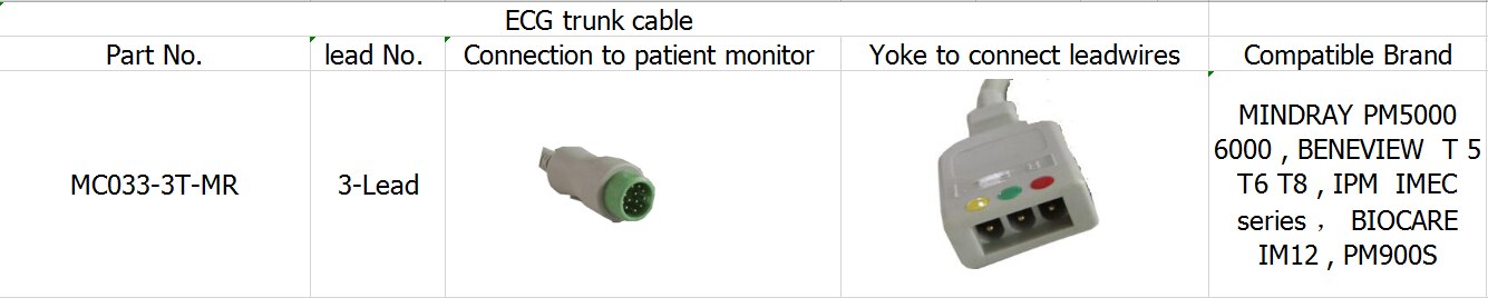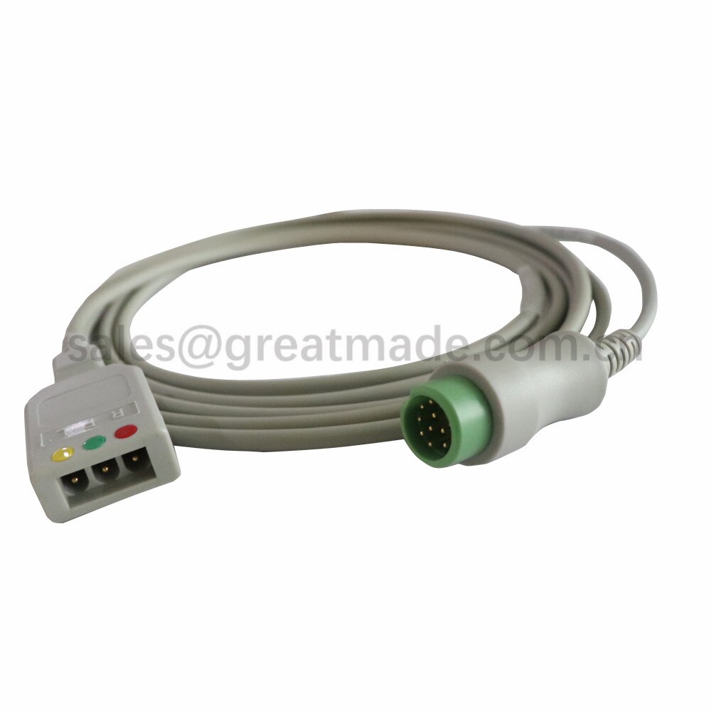 ECG-kabel 3-draads trunk-kabel voor BENEVIEW T5 T6 T8, BIOCARE IM12, PM900S