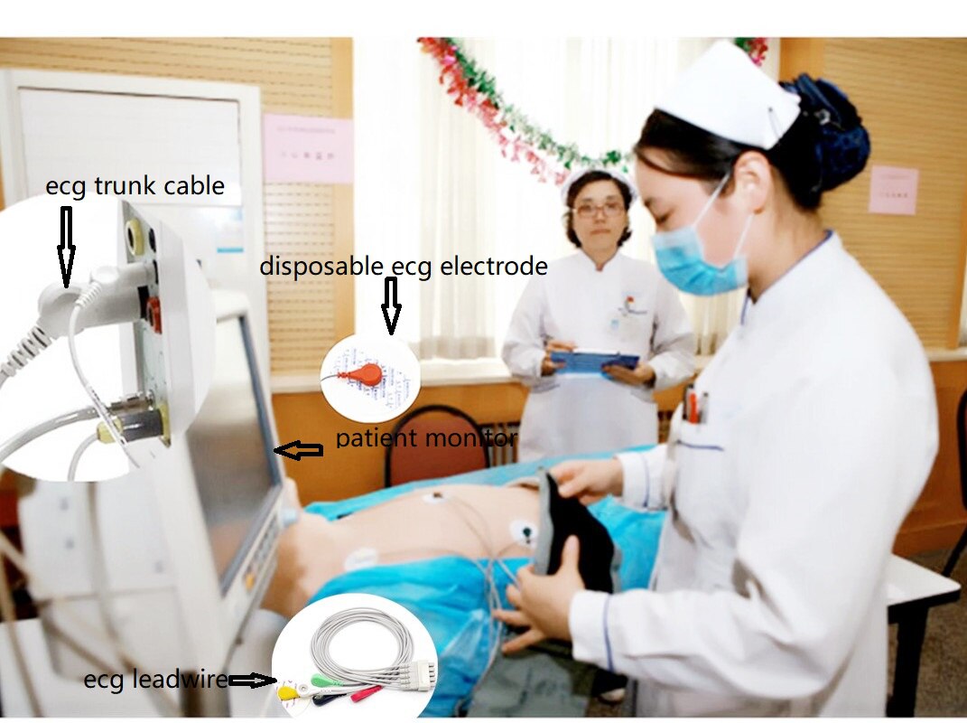 Vraag een multi-parameter monitor / elektrocardiogrammachine / trainingsband of defibrillator aan, doorvoer het bio-elektriciteitssignaal van het menselijk lichaam. De patiëntkabels en elektrodegeleidingsdraden worden gebruikt om elektroden, katheters en / of sensoren die op geschikte locaties op de patiënt zijn geplaatst aan te sluiten op een bewakingsapparaat voor algemene bewaking en / of diagnostische evaluatie door een zorgverlener