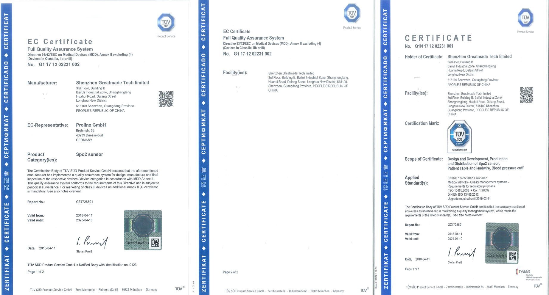 Shenzhen Greatmade Tech LTD Shenzhen Greatmade Tech LTD is een prefessionele fabrikant van medische kabel, die veel wordt gebruikt met multi-parameter patiëntmonitor, pulsoximeter, ECG-apparaat, bloeddruk montior, elektrochirurgische eenheid. We hebben 10 jaar ervaring op dit gebied. We hebben onze eigen fabriek in Shenzhen, China, en hebben een compleet productieapparaat en testapparaat. We bouwen ook een professioneel onderzoeks- en ontwikkelingsteam om aan verschillende marktbehoeften te voldoen. Onze superieure kwaliteit, voordelige prijs en doordachte service hebben de permanente ondersteuning van onze nationale en internationale klanten verbeterd. Onze producten zijn inclusief hieronder: 1.Spo2-sensor, spo2-sonde, spo2-verlengkabel, spo2-adapterkabel, spo2-verbindingskabel, herbruikbare spo2-sensor en wegwerp spo2-sensor. vingerclip spo2 sensor 2. ecg-kabel patiëntmonitor, 3-aderige / 5-aderige draad. 3-aderige / 5-aderige trunk-kabel, klikdraden. 3.10-lead banaan ekg-kabel, ledemaatelektrode, borstelektrode. 4. Bloeddrukmanchet, drukinfuuszak, pasgeboren manchet voor eenmalig gebruik, tourniquet, nibp-manchet, nibp-luchtslang, nibp-verbindingsslang, invasieve bloeddrukadapterkabel. 5. Temperatuursonde. 6.Plastic pull-push connectoren, waterdichte connectoren, luchtvaartstekkers en andere nibp- en spo2-connectoren 7.Elektrochirurgisch potlood.