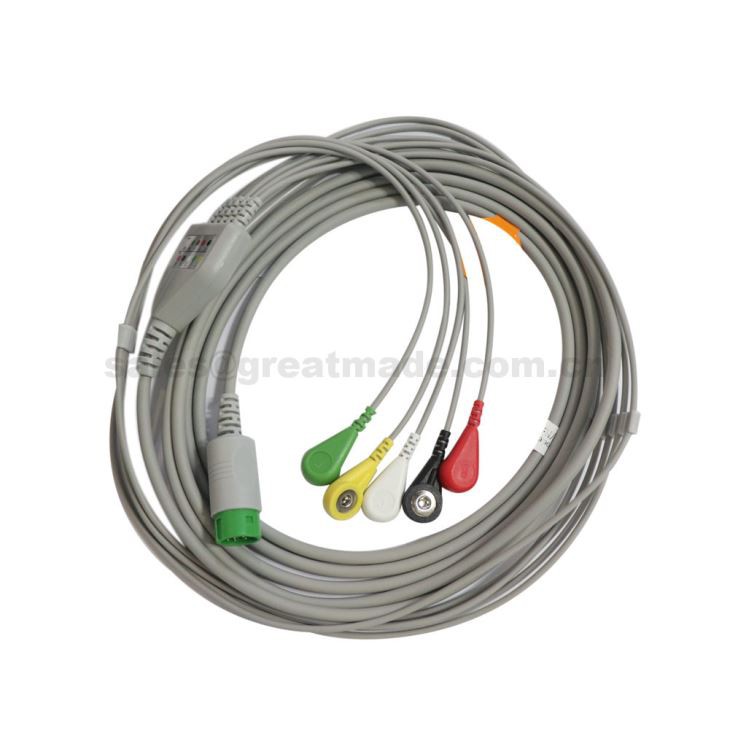 Eendelige 5-afleidingen ECG-kabel compatibel met Mindray Beneview T5. T6. T8, PM5000, PM 6000, Snap, IEC, 12ft, Round 12PIN